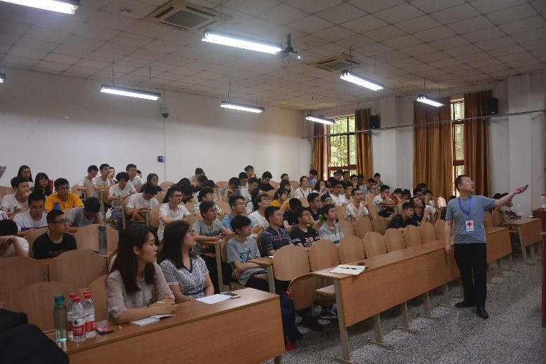 白老师首先介绍了红十字运动的起源与发展,通过对红十字历史和现状的介绍,阐述了红十字会的神圣使命和职责——救灾、救助、救护、推动义务献血、造血干细胞捐献、遗体和人体器官捐献。
