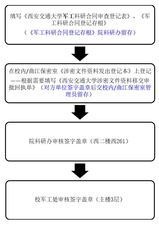 提醒:合同书/任务书签订完成后,送校军工处原件一份备案。