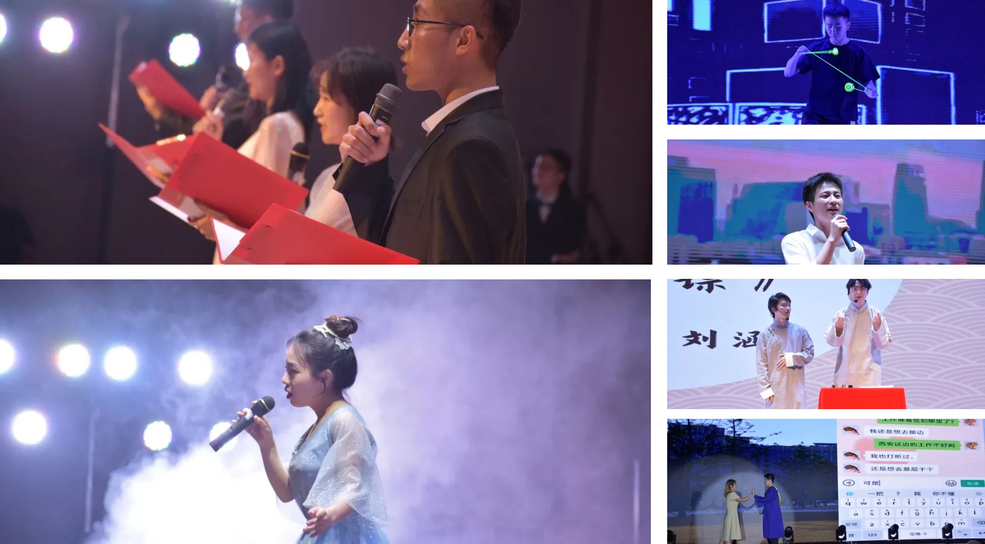 在激情热烈的开场舞中,必赢626net入口2021届毕业晚会拉开帷幕。本场晚会分为三个篇章——执笔年华、落墨飞花、韶光信笺。娓娓道来、深入人心的歌声、力量和美感兼具的舞蹈、情感饱满的朗诵、炫酷迷眼的悠悠球表演、抛梗无数的相声、爆笑催泪的情景剧、嗨爆全场的乐队演出,穿插着“我爱记歌词”游戏互动和抽奖环节、丰厚的活动奖品,全场气氛热烈,掌声不断,为观众呈现了一场视听盛宴。