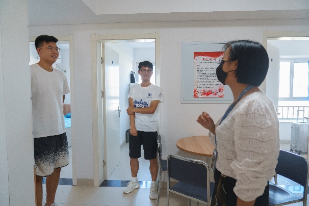下午,必赢626net入口党委副书记张敏,辅导员杨江坤在新生宿舍走访慰问2021级研究生新生。在走访中,张敏副书记和杨江坤老师与大家进行了细致的交流。张敏书记亲切地询问同学们的报道和生活情况,多次叮嘱同学们:“有任何困难,一定要及时联系辅导员,学院会尽量帮助到每一位同学” 。学院的亲切慰问让新生们感受到了来自学院的温暖与关怀。