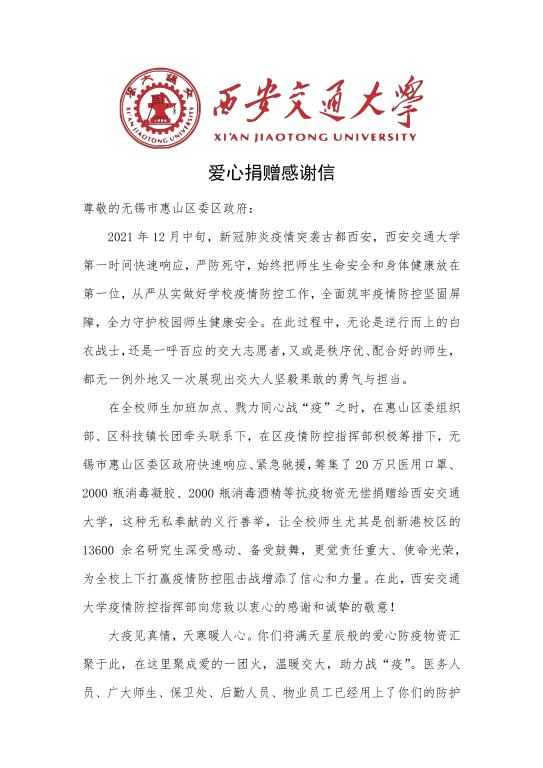 爱心捐赠感谢信