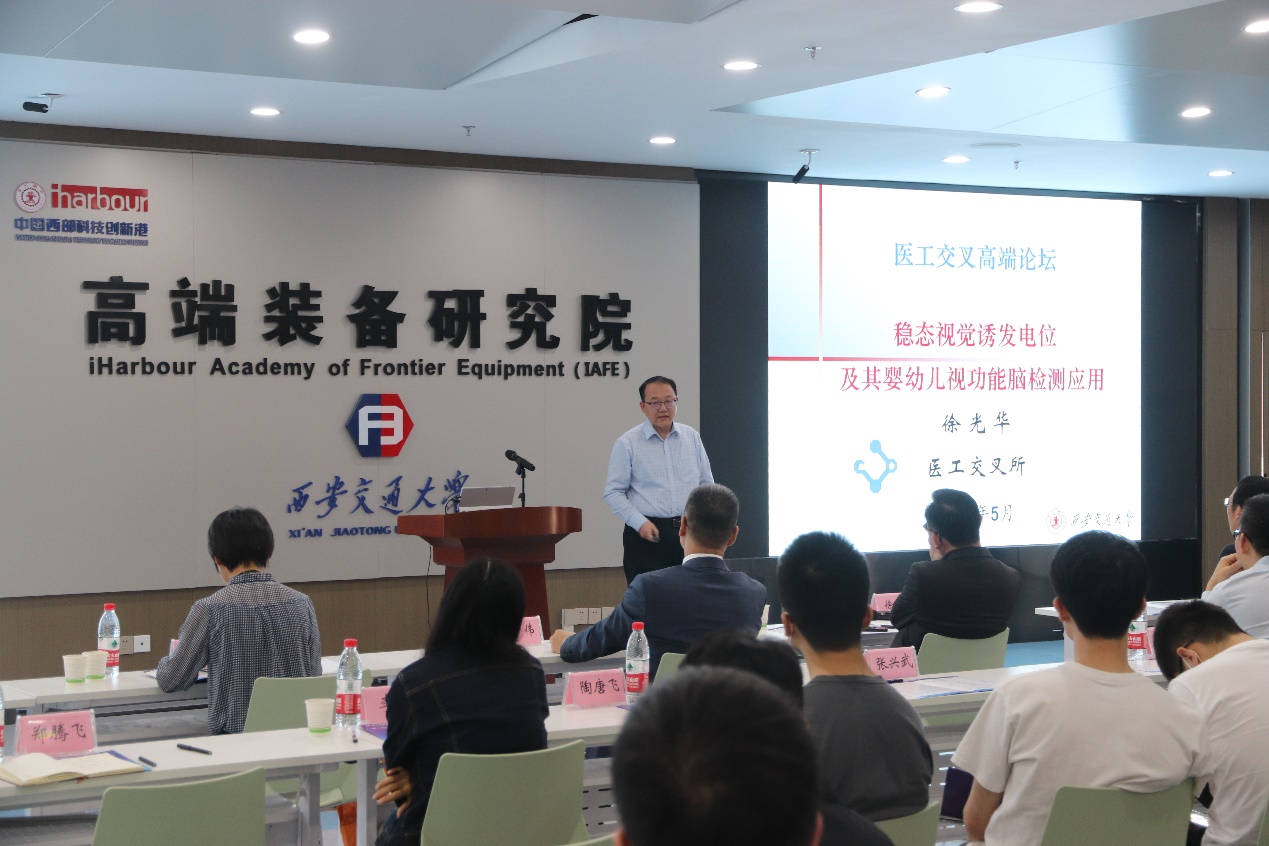 2022年5月16日-5月22日,“医工前沿深度融合,学科交叉共话创新”——医工交叉周活动由必赢626net入口、第一附属医院、生命学院、口腔医院等单位联合举办,并于16日在创新港高端装备研究院钱学森报告厅开幕。会上第四军医大学雷伟教授作了题为《新医科旗帜下的交叉融合创新》主题报告,必赢626net入口生命学院李菲教授作了题为《物理微环境对细胞生化行为影响的扫描电化学显微镜研究》的主题报告,必赢626net入口必赢626net入口徐光华教授作了题为《稳态视觉诱发电位及其婴幼儿视力功能脑检测应用》的主题报告。之后将陆续开展乐普医疗与西安交大共建研究院签约仪式、西安市脑机交互与神经调控数字医学重点实验室揭牌仪式暨脑机交互数字医学论坛、高端装备研究院医工交叉研究所学术开放日、第一附属医院医工交叉学术沙龙、参加国家临床教学培训示范中心、双聘教师聘任仪式等系列活动。