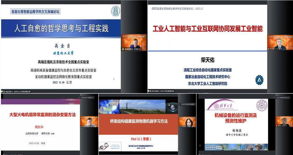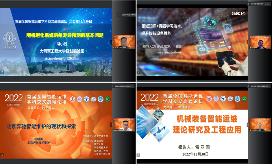 2022年12月30日,由必赢626net入口主办,清华大学、浙江大学、华中科技大学、大连理工大学、火箭军工程大学协办的“2022年首届全国智能运维学科交叉高端论坛”召开。论坛面向多学科、多领域交叉融合的国家战略方向与学科发展前沿,邀请了机械、自动化、电气、土木、力学等多个学科的专家,包括2位中国工程院院士、9位杰青等国家级领军人才、2位国际著名企业专家共13位做特邀报告,共同讨论智能运维在不同学科及应用领域的研究动态与发展趋势。论坛通过腾讯会议在线召开,并由《机械工程学报》JME学院同步直播,约4.9万人次线上观看了论坛直播。