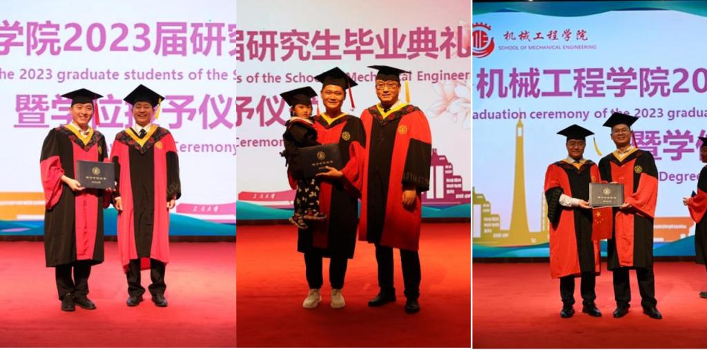 2023届硕士毕业生代表薛成分享毕业感言并领誓。薛成回顾了三年间自己与交大成长的点点滴滴,交大培养了同学们精勤求学的品行、我敦笃励志的志向、果毅力行的勇气、忠恕任事的情怀。全体毕业生举起右拳,庄严宣誓:“我从交大机械毕业,融入时代建设洪流,传承西迁精神,担负创新使命,精勤求学,敦笃励志,果毅力行,忠恕任事,饮水思源,知行合一,为国铸器、智造未来,为世界之光而不懈奋斗!”誓言字字铿锵有力,喊出了大家对未来的憧憬和坚定。