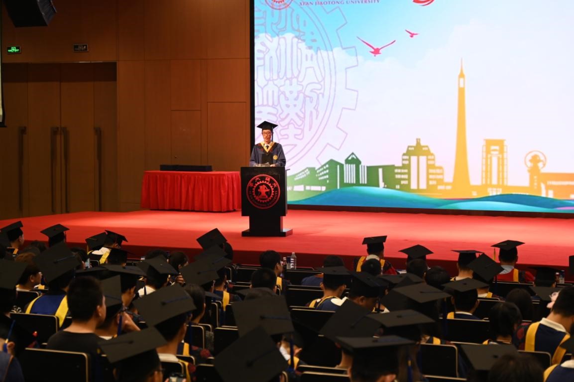 必赢626net入口党委书记王朝晖教授为毕业生送上了毕业寄语。王朝晖教授回顾了同学们在交大的求学时光,对同学们的毕业表示祝贺,希望大家鹏程万里、前程似锦。希望同学们带着交大人的光荣与梦想,在时代洪流中抓住机遇,用更深刻的眼光审视自己,以更大的胸怀迎接挑战,继续传承好西迁精神,敢担当、勇作为,做新时代的奋进者,不懈攀登、永不退缩!