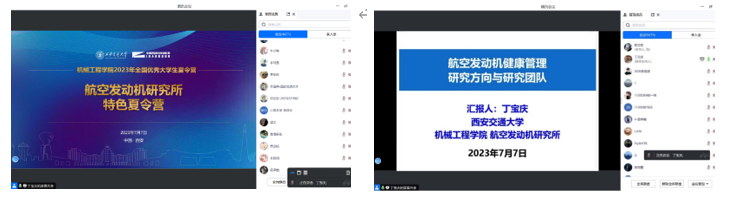 航空发动机及航天制造与信息工程研究所联合特色夏令营于下午2时开展,系所中的航空发动机健康管理团队、航空发动机健康管理动力学团队、抗疲劳制造与智能团队、航空发动机容错控制与新概念发动机团队、智能检测维护机器人团队分别进行了宣讲,分别对各自的团队组成、研究内容和成果进行了详细的讲解和说明。