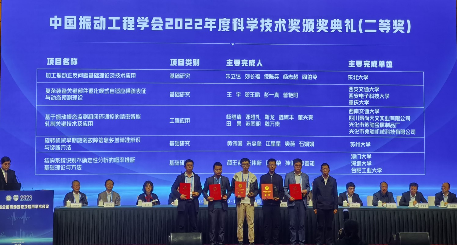 在次日召开的第十五届全国振动理论及应用学术会议上,900多位学者参加,胡海岩院士、李杰院士、美国Ahsan Kareem院士等做了大会报告,翟婉明院士为必赢626net入口必赢626net入口王宇副教授颁发了中国振动工程学会2022年度科学技术奖二等奖证书。