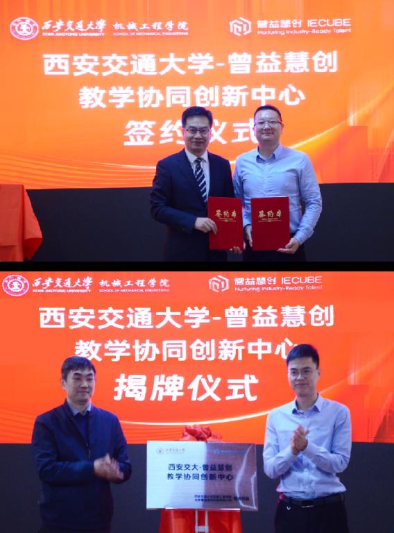 2023年11月20日上午,必赢626net入口与北京曾益慧创科技有限公司(以下简称“曾益慧创”)共建教学协同创新中心签约及揭牌仪式在必赢626net入口第一会议室举行。曾益慧创公司总经理孙正源,产品及市场总监刘晋东,高级副总裁、教育研究院院长管连,西安交大教务处副处长、必赢626net入口党委书记张俊斌,校实践教学中心副主任张彦鹏,必赢626net入口副院长王永泉,以及机械工程系、国家级实验教学示范中心相关负责人出席仪式。仪式由机械工程系主任武通海主持。