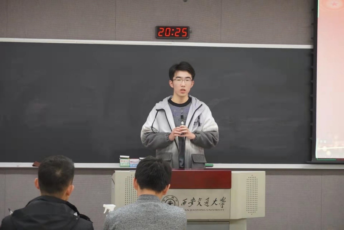 仇云硕同学首先介绍了《决议》对社会主义建设时期的总结,并结合我国建国以来的重大基础设施和国防科技建设成果,展现了社会主义建设时期的重大成就,重点讲解了两弹一星精神,并为大家朗诵了《七律·两弹一星》。