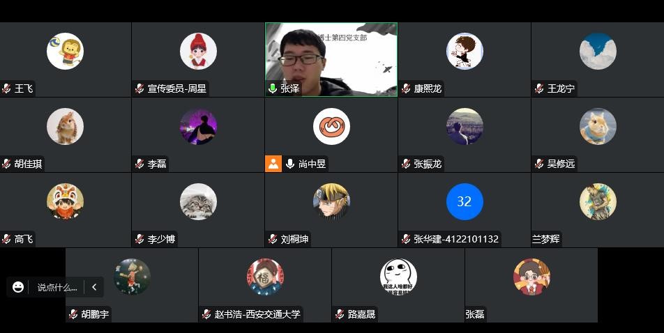 本次会议还对张泽同志提出的转正申请进行了讨论,张泽同志首先汇报了预备期一年来在思想、政治、工作和作风方面的提高等内容。在这一年中,张泽同志在政治思想方面,加强了理论学习;在科研学习方面,端正了学习态度,并争取在基础前沿领域作出自己贡献。在疫情防控期间,积极主动参加了抗疫活动。随后,其入党介绍人李少博、胡鹏宇同志对张泽同志在预备期阶段的科研、生活、抗疫表现进行了肯定,认为其达到转正要求。最后,王飞同志代表支委会对张泽同志预备期一年的表现给予了肯定,经全体党员投票一致同意了张泽同志的转正申请。
